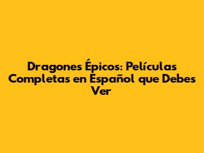 Dragones Épicos: Películas Completas En Español Que Debes Ver