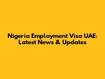 Nigeria Employment Visa UAE: Latest News & Updates