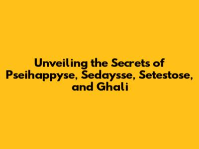 Unveiling The Secrets Of Pseihappyse, Sedaysse, Setestose, And Ghali